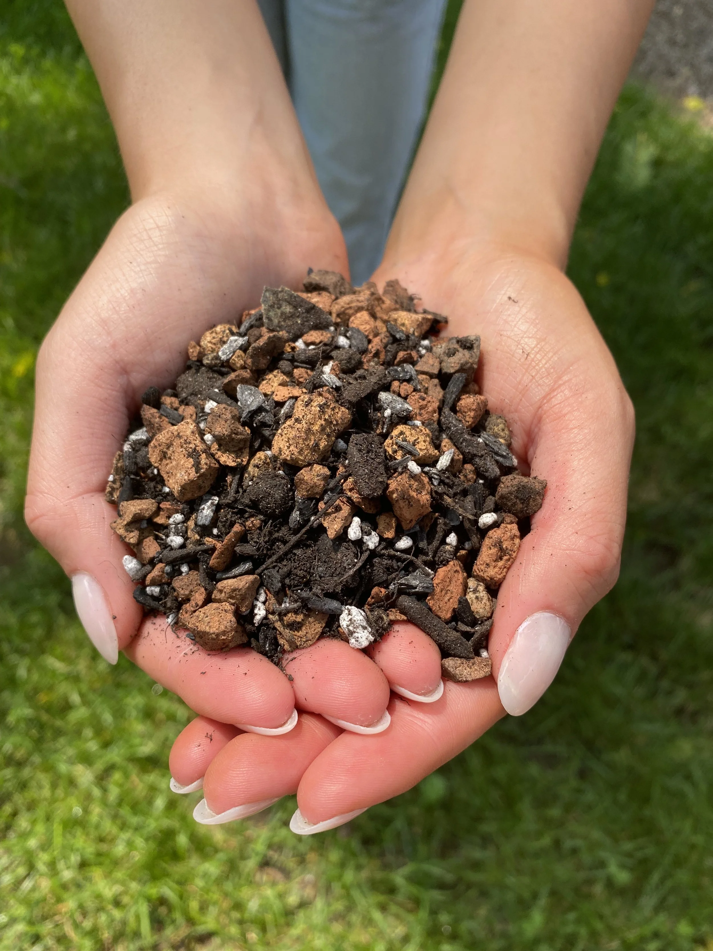 RECYCLED CLAY BRICK, ORGANIC BIOCHAR, SPHAGUM PEAT MOSS, PERLITE, ORGANIC COMPOST, BIOLOGICALS